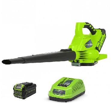 40V Dmuchawa/Odkurzacz (silnik bezszczotkowy) GREENWORKS Urządzenie (GD40BV) + GR2910907 Ładowarka + GR2927007 4,0 Ah Akumulator- Łączy funkcje dmuchawy i odkurzacza - Opcja mulczowania 10:1 - Opcja regulacji prędkości Niezwykle lekka i wygodna dmuchawa z funkcją odkurzacza wraz z mulczowaniem, wyposażona w bezszczotkowy silnik pozwalający na wydajne sprzątanie otoczenia domu. Odpowiedni komfort pracy zapewniają amortyzowany uchwyt oraz opcja regulacji prędkości.