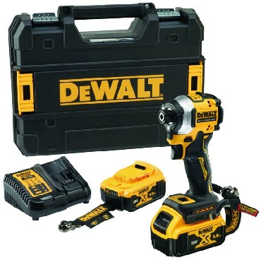 18V XR BEZSZCZ. ZAKRĘTARKA UDAROWA , kompaktowa, 3 biegowa, 0-1000/2800/3250/min, udar 0-3800/min, Maks.mom.obr. 208Nm, uchwyt do pasa. 2aku 18V 5Ah, ładowarka, kufer, LANYARD READY