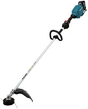 Akum. kosa XGTUR014G Akumulatorowa kosa o mocy zbliżonej do kos spalinowych z silnikiem o pojemności 35 cm3. Akumulatorowa kosa z silnikiem bezszczotkowym i technologią AFT (Active Feedback Sensing), zasilana akumulatorem 40V max. Z trybem wysokiego momentu obrotowego, rekomendowanym do ciężkich zastosowań takich jak rozdrabnianie oraz ścinanie krzewów. Technologia WetGuard oznacza wysoka odporność na wodę pozwala na pracę nawet gdy urządzenie jest mokre. Technologia AFT (Active Feedback Sensing) to automatyczne wyłączenie narzędzia w celu ochrony użytkownika w przypadku nagłego spowolnienia lub zatrzymania narzędzia tnącego (tzw. kick-back). Główny włącznik zasilania posiada funkcję automatycznego wyłączenia. Dźwignia pozwala na płynną kontrolę prędkości i zablokowanie na wybranym poziomie prędkości obrotowej. Obudowa przekładni wykonana jest z aluminium. Kosa została wyposażona w wygodny uchwyt typu pętla. Posiada również hamulec elektryczny, funkcję łagodnego rozruchu, oraz funkcję usuwania resztek trawy z narzędzia tnącego (powolne, lewe obroty w celu samooczyszczenia). Z możliwością zastosowania 2 żyłkowej głowicy tnącej (o średnicy cięcia 450 mm). Silnik umieszczony w górnej części urządzenia sprawia, że jego wyważenie jest zbliżone do wyważenia urządzenia spalinowego. Klasa izolacji IPX4.