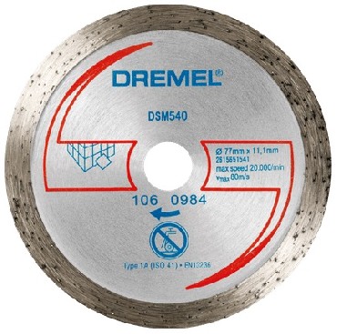 DREMEL DSM20 diamentowa tarcza tn±ca do p³ytek (DSM540)Diamentowa tarcza tn±ca DSM540 jest przeznaczona do ciêcia twardych materia³ów, np. marmuru, betonu, cegie³, porcelany czy p³ytek ceramicznych.